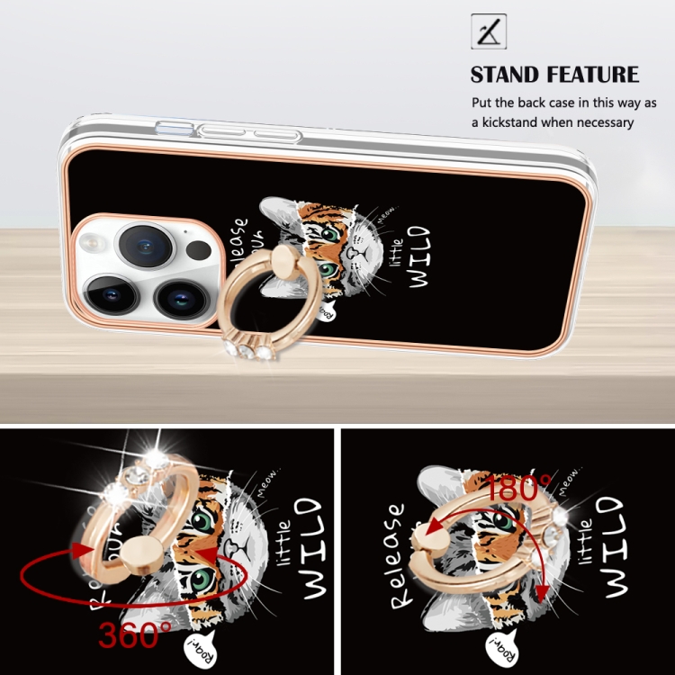 Funda para iPhone 15 Pro Galvanoplastia Imd Doble Cara con Soporte para Anillo (Crecimiento Natural)