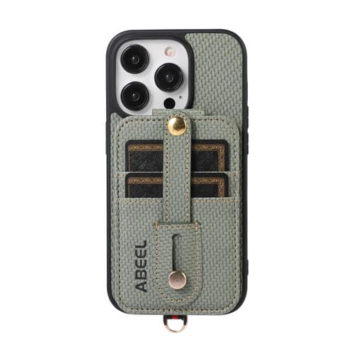 Funda para Teléfono Abeel iPhone 15 Pro Max con Tarjetero RFID Fibra de Carbono (Verde)
