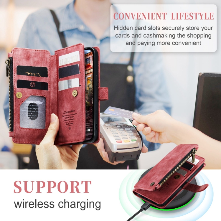 Funda para iPhone 15 Pro Max Caseme C30 Cuero Multifuncional (Rojo)