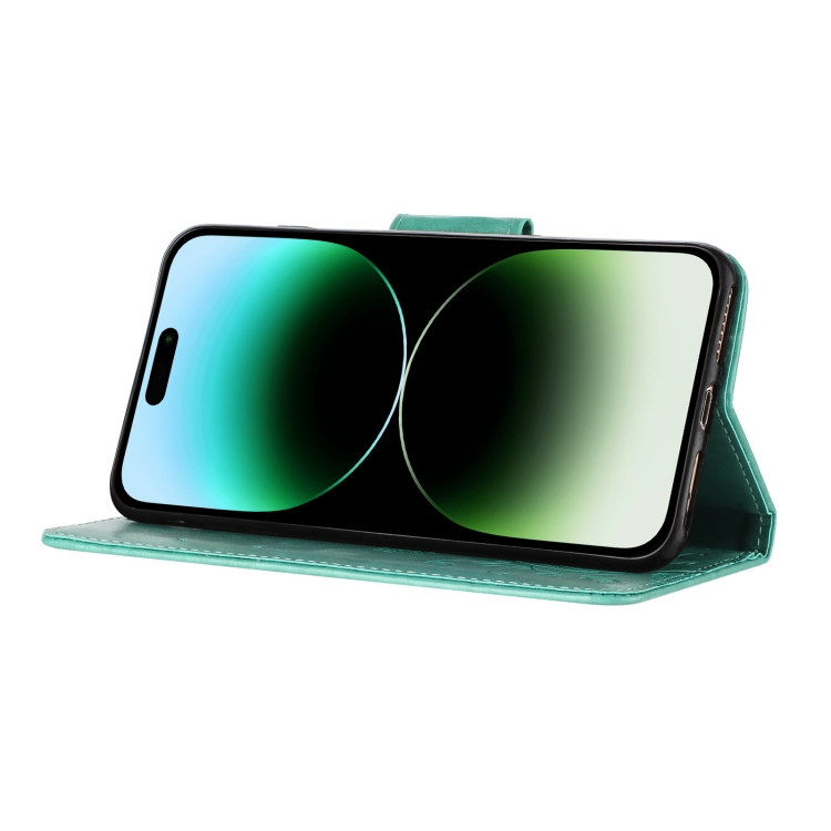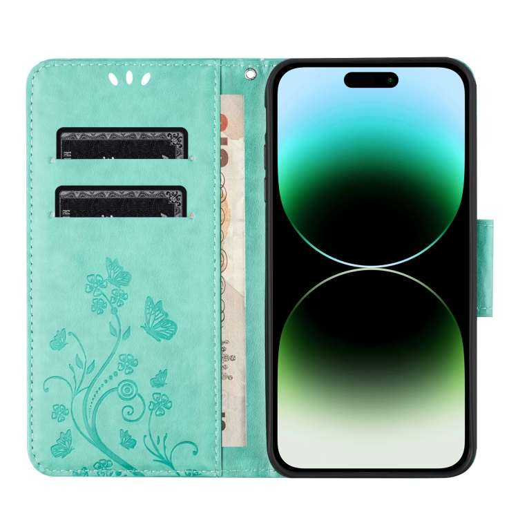 Funda de Teléfono iPhone 15 Pro Max Cuero con Tapa Patrón Flores Mariposa (Verde)