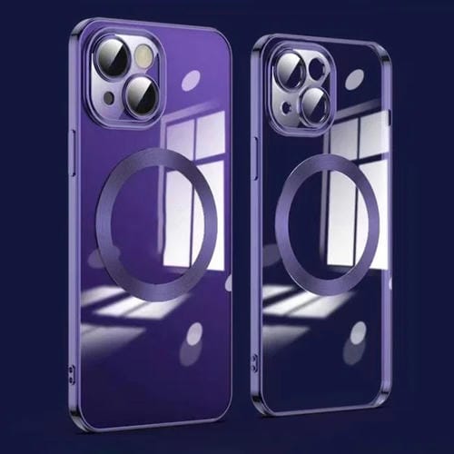 Protector de Lente + Estuche para Teléfono iPhone 15 Magsafe Electrochapado (Púrpura Oscuro)