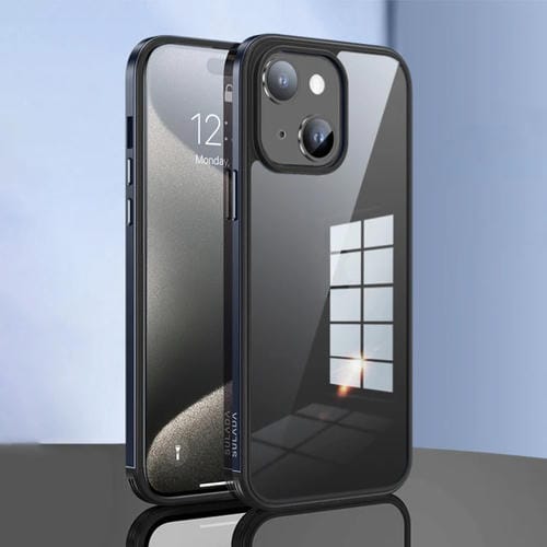 Marco de Metal Sulada + Nano Glass + Funda TPU para iPhone 15 (Azul)