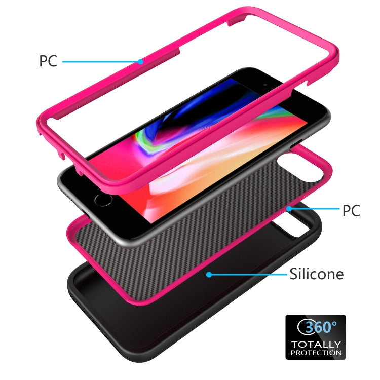 Funda Protectora iPhone 6/7/8 Plus Wave Pattern 3 En 1 Silicona y PC (Negro + Rosa Fuerte)
