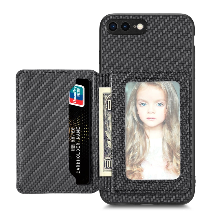 Estuche para Teléfono iPhone 7 Plus 8 Plus con Bolsa de Tarjeta Magnética Fibra de Carbono (Negro)