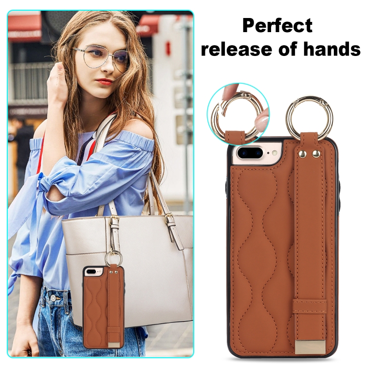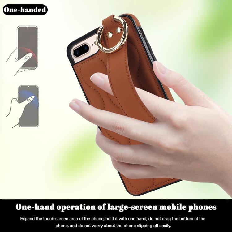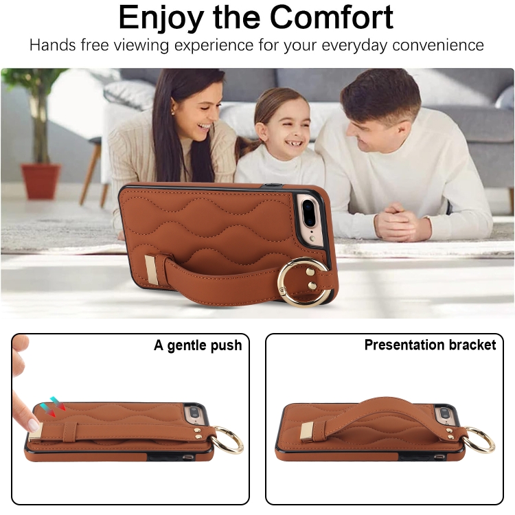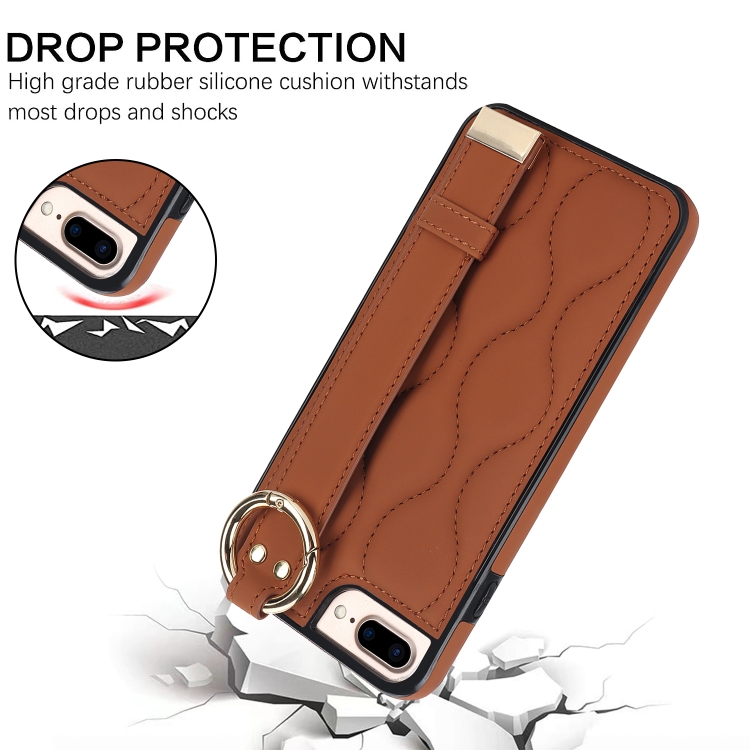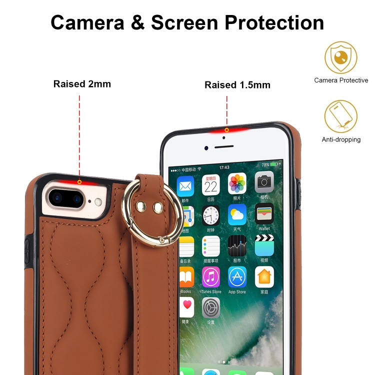 Funda para teléfono iPhone 7 Plus Antideslizante Cobertura Completa Anillo PU con Muñequera (Marrón)