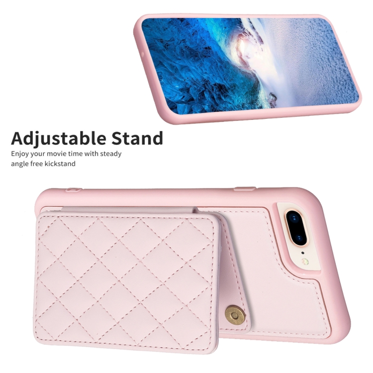 Funda para iPhone 8 Plus 7 Plus Bf25 Square Plaid Card Bag Holder Phone Case (Rosa)