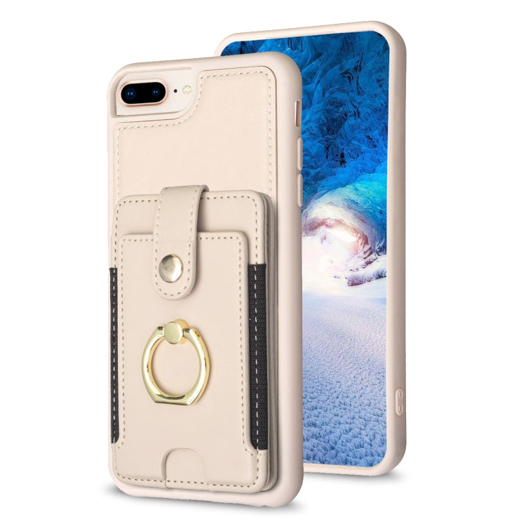 Estuche para Teléfono Bf27 para iPhone 8 Plus y 7 Plus con Soporte para Tarjeta y Anillo de Metal (Beige)