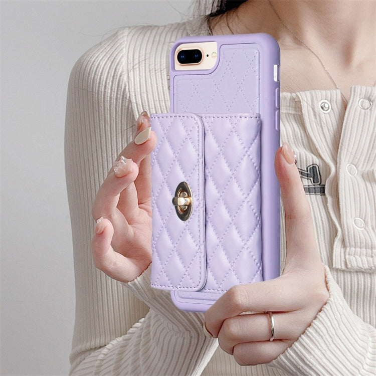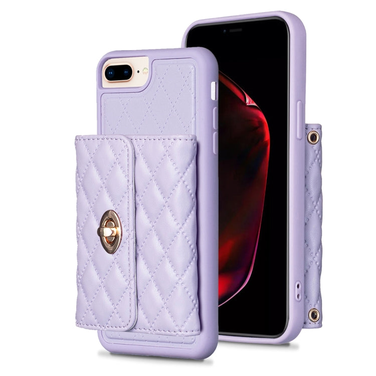 Cartera para iPhone 8 Plus / 7 Plus con Hebilla de Metal Horizontal Estuche de Cuero Rómbico (Púrpura)