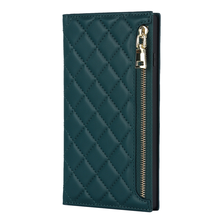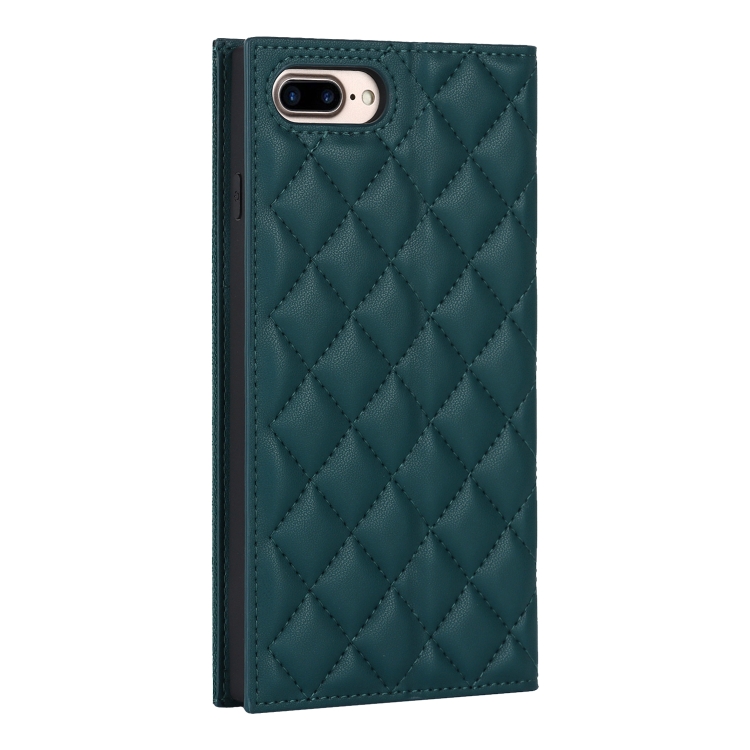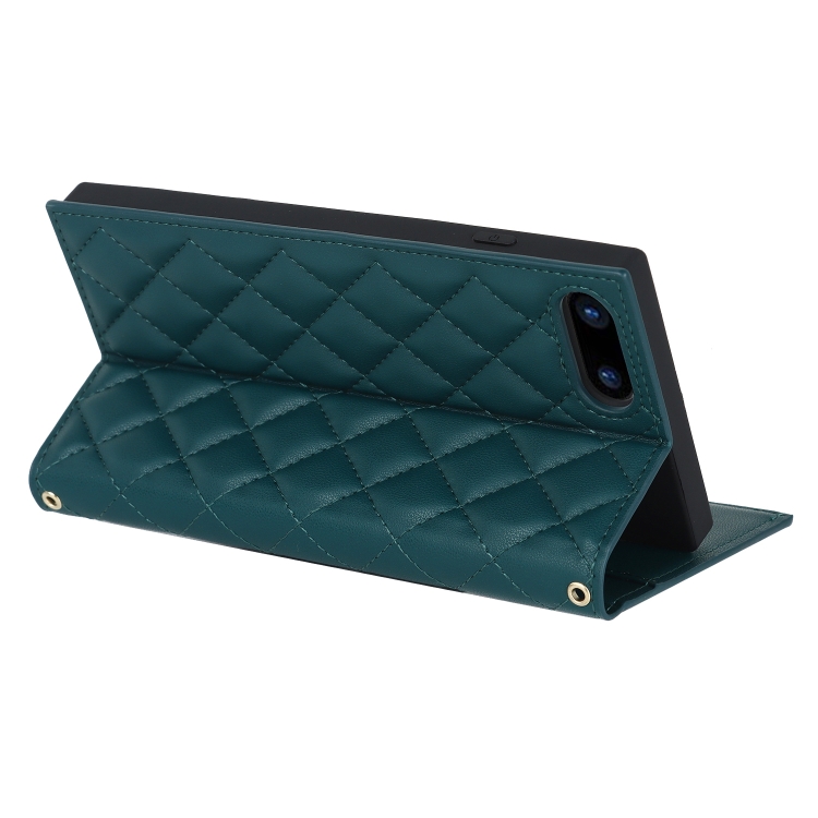 Funda de Cuero con Cremallera para iPhone 8 Plus y 7 Plus Grid Texture con Lanyard (Verde)