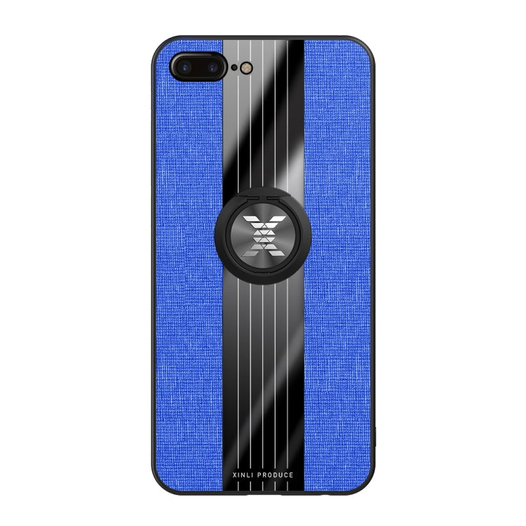 Funda Protectora TPU Xinli para iPhone 8 Plus y 7 Plus Textura Tela Costura Soporte Anillo (Azul)