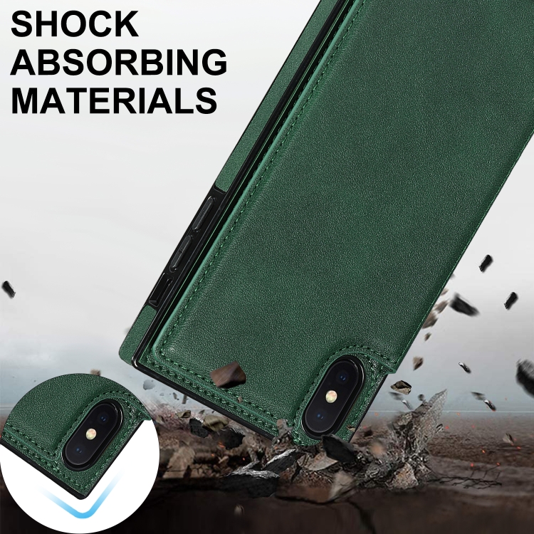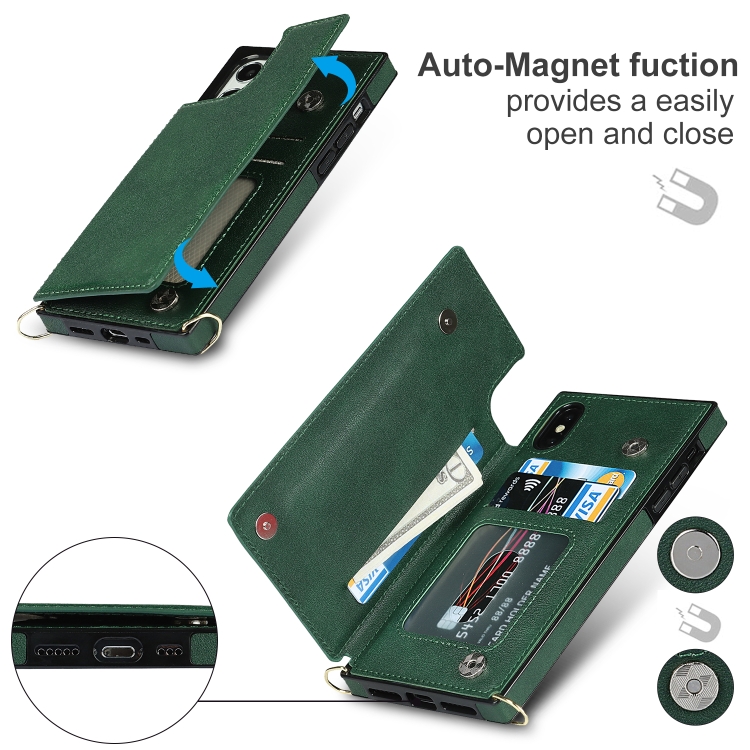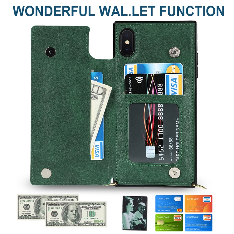 Funda para iPhone X / Xs Cross-Body Square Double Buckle Flip Card Bag TPU + PU con Ranuras y Correa (Verde)