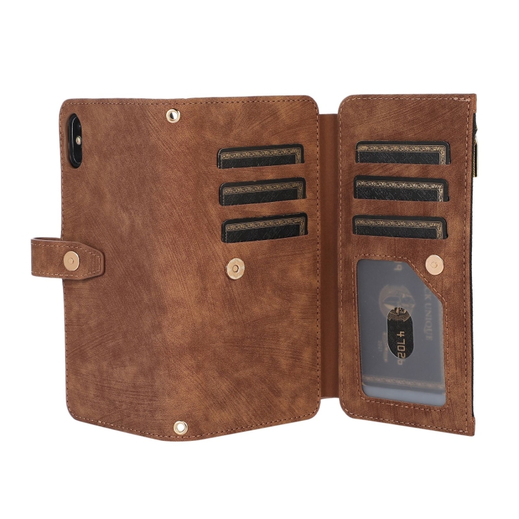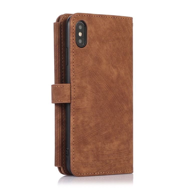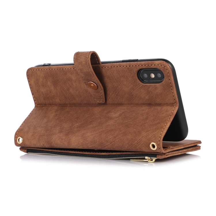 Funda para Teléfono iPhone X / Xs Dream 9-Card Wallet Zipper Bag Cuero (Marrón)