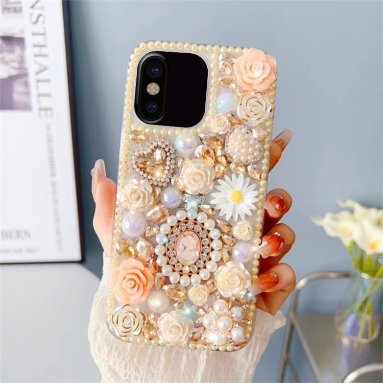 Funda para Teléfono iPhone X / Xs PC con Incrustaciones de Diamantes y Rosas (Amarillo)