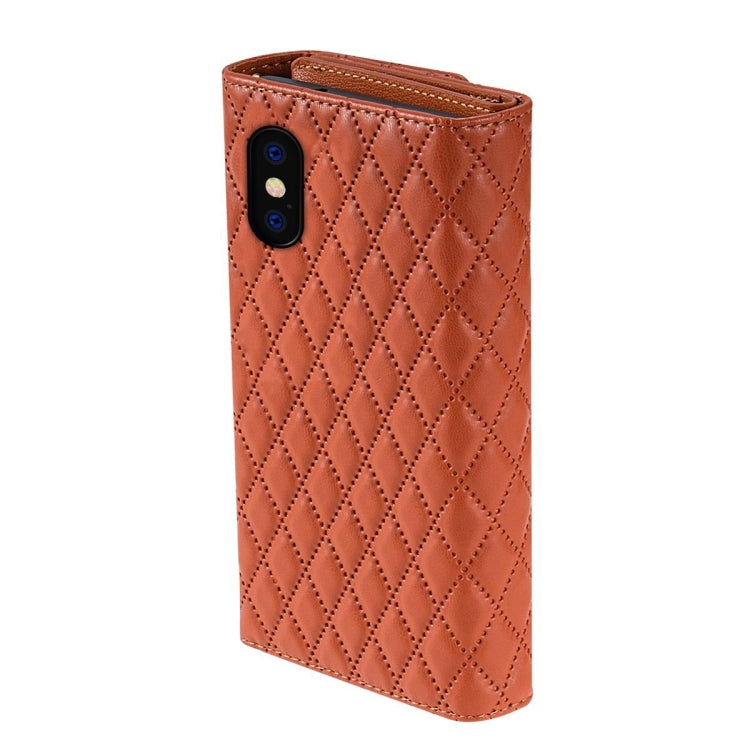Funda para Teléfono iPhone X / Xs Cuero Rómbico con Billetera MultiTarjeta y Cremallera (Marrón)