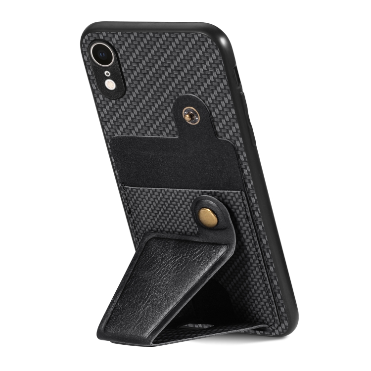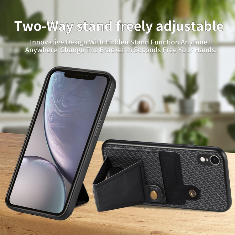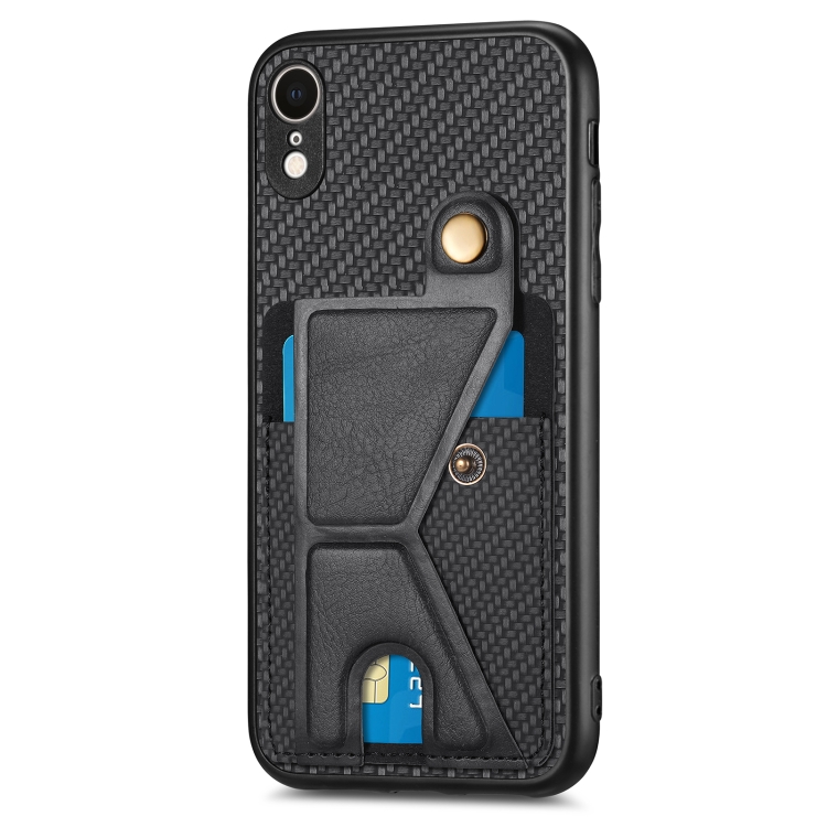 Funda para Teléfono iPhone Xr Carbon Fiber Wallet Flip Card con Soporte en Forma de K (Negro)