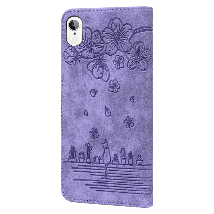 Estuche de Cuero para iPhone Xr Cartoon Sakura Cat En Relieve (Púrpura)