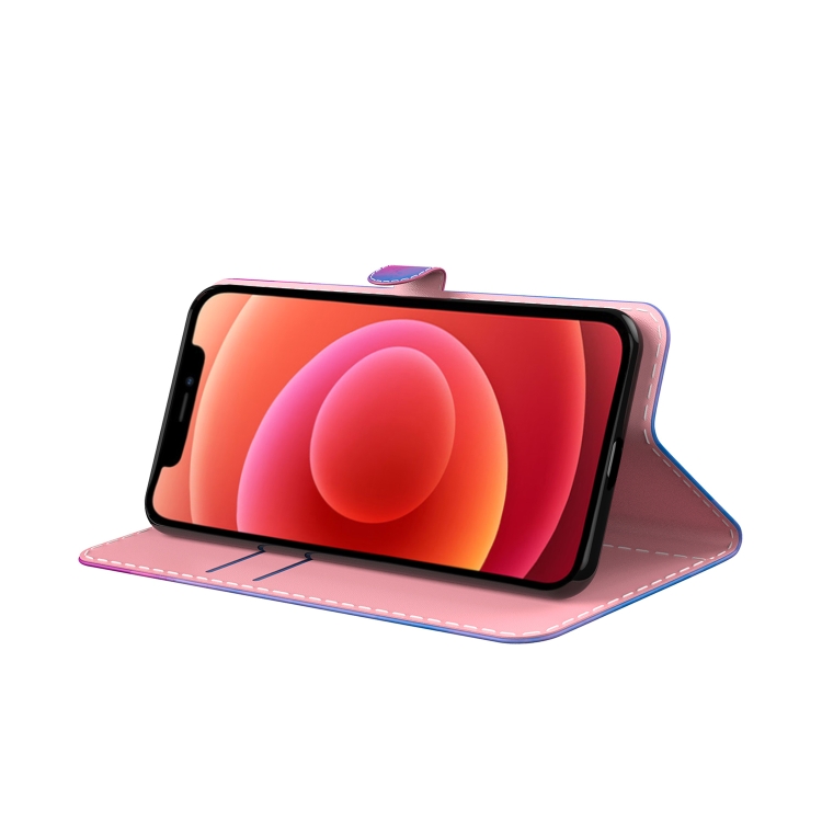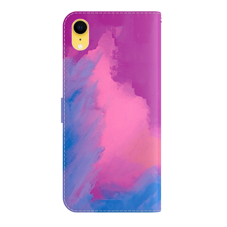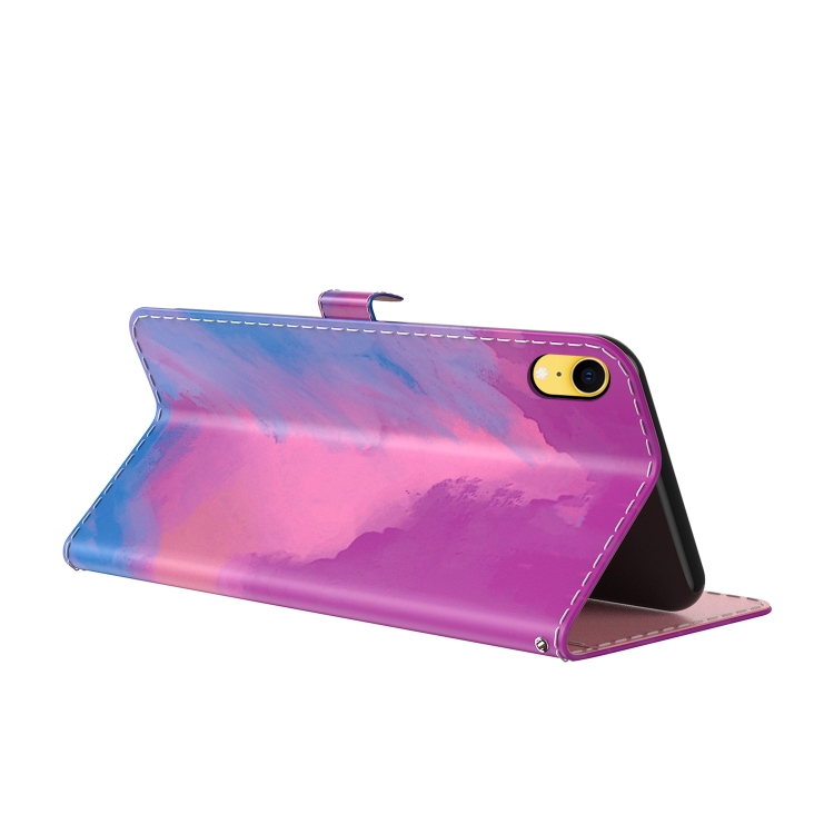 Estuche de Cuero para iPhone Xr con Tapa Horizontal Patrón Acuarela Soporte Ranura Tarjeta Billetera (Púrpura Rojo)