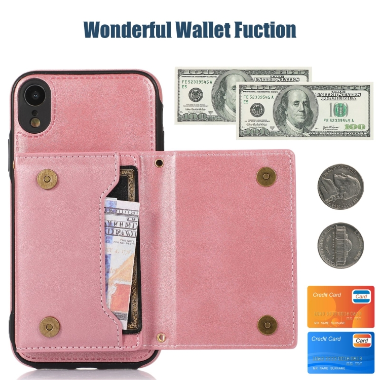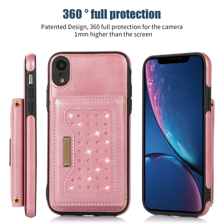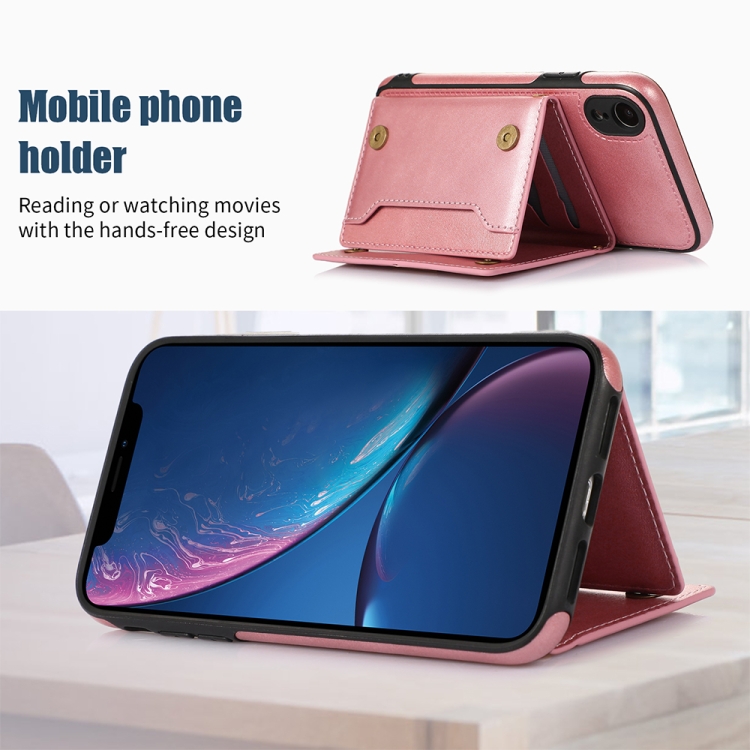 Estuche de Teléfono iPhone Xr Cuero Rfid Tres Pliegues con Cordón (Oro Rosa)