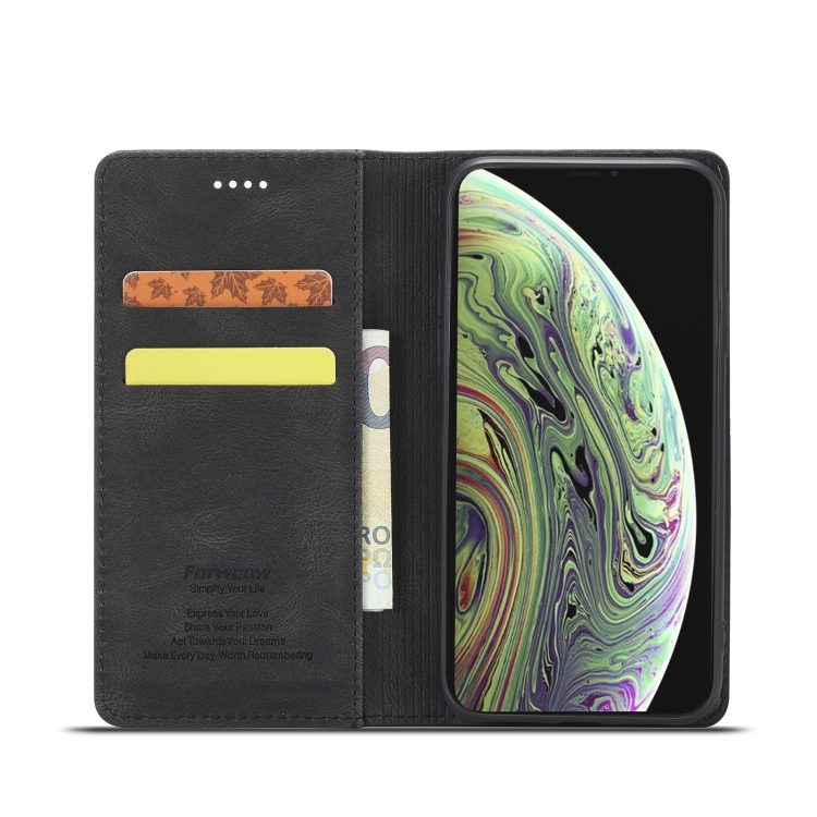 Funda para iPhone Xr FoRWenw F2 Series Cuero con Tapa Horizontal Magnética Soporte Ranuras para Tarjetas y Billetera (Negro)