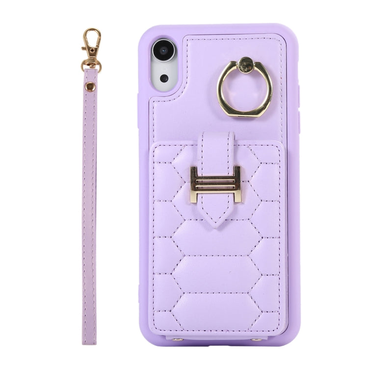 Funda para teléfono iPhone Xr Vertical Card Bag Ring Holder con doble cordón (Púrpura)