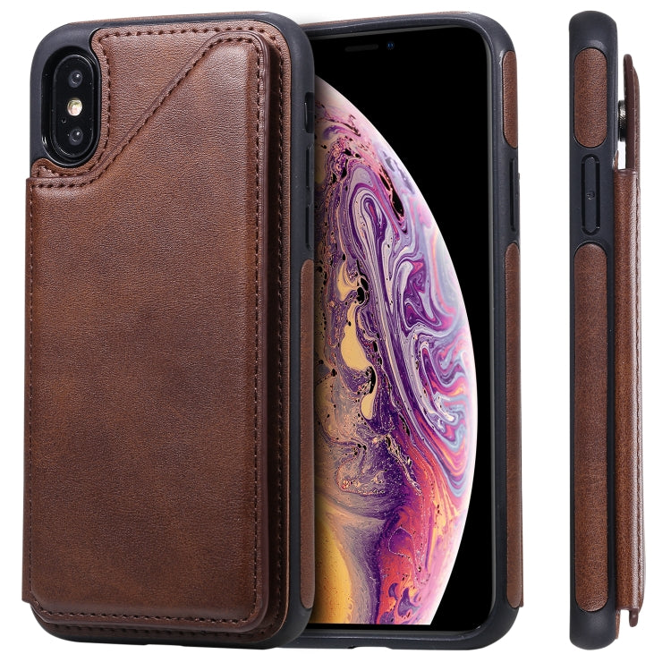 Funda Protectora iPhone Xs Textura Pantorrilla Soporte Ranuras Tarjetas (Café)
