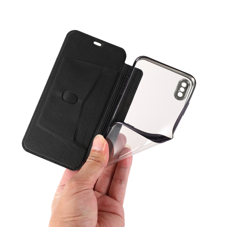 Estuche de Cuero para iPhone Xs Max Bronceado Pu + TPU con Tapa Horizontal, Soporte y Ranura para Tarjeta (Negro)
