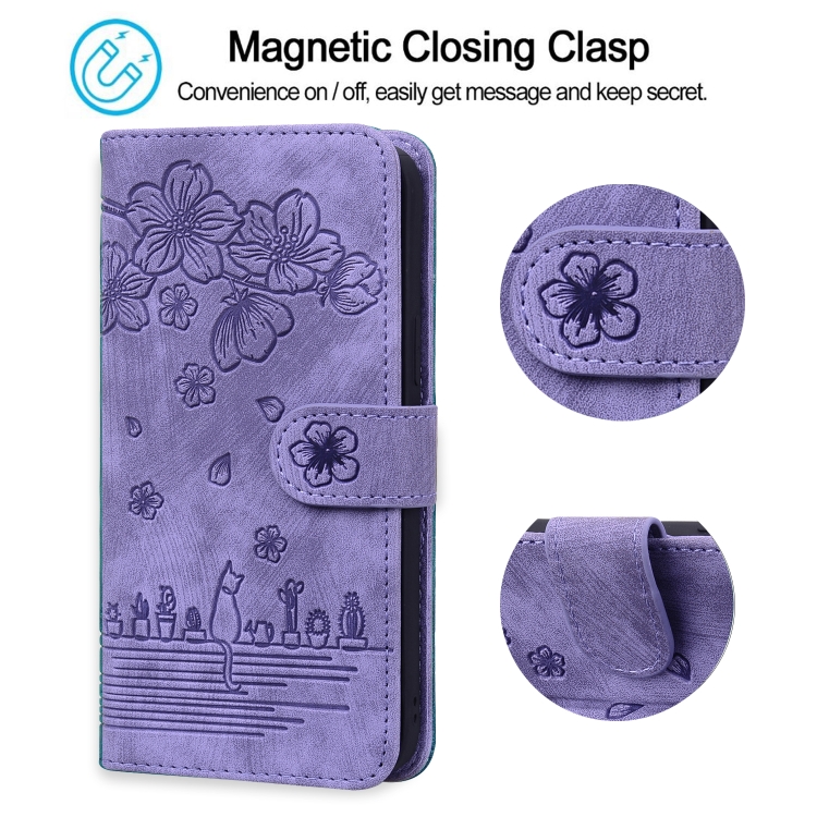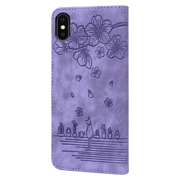Estuche de Cuero para iPhone Xs Max Cartoon Sakura Cat En Relieve (Púrpura)