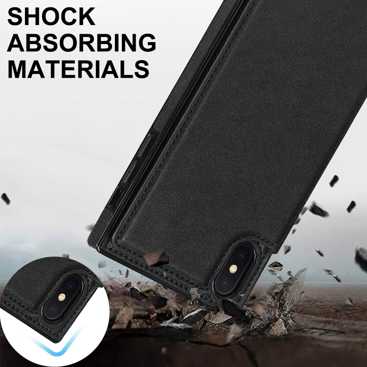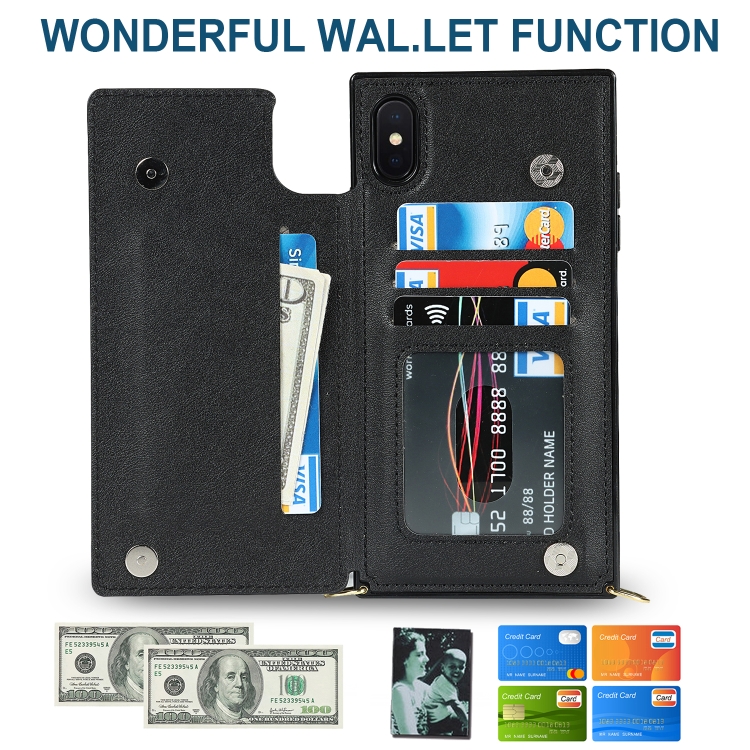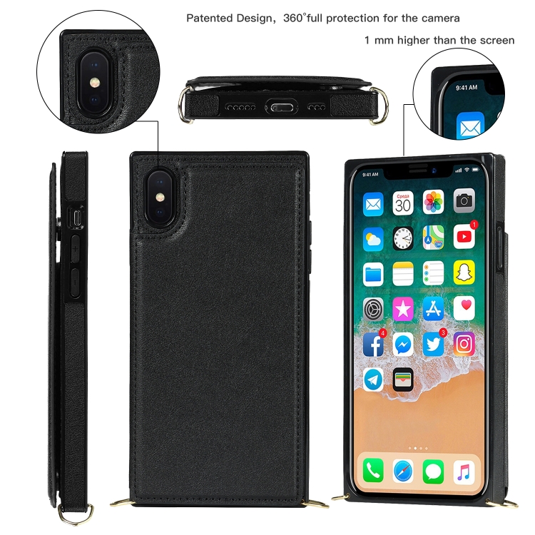 Funda para iPhone Xs Max Cross-Body Square Double Buckle Flip Card Bag TPU y PU con Ranuras para Tarjetas, Billetera, Foto y Correa (Negro)