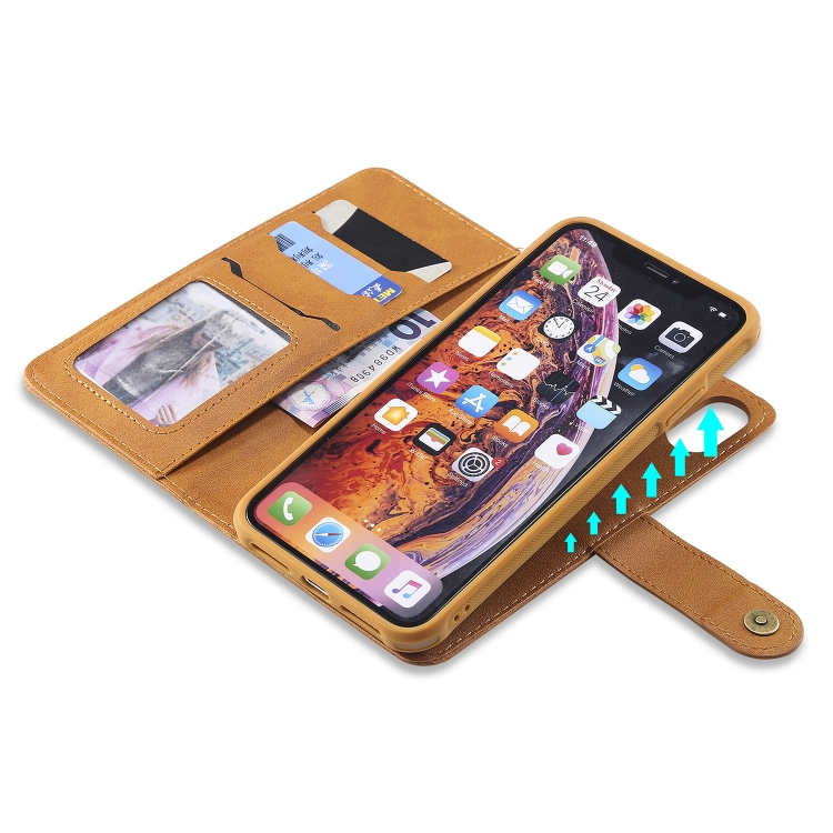 Estuche de Cuero para iPhone Xs Max con Tapa Horizontal Magnética Desmontable Multifuncional Ranuras Tarjetas Soporte Billetera Marco Fotos (Marrón)