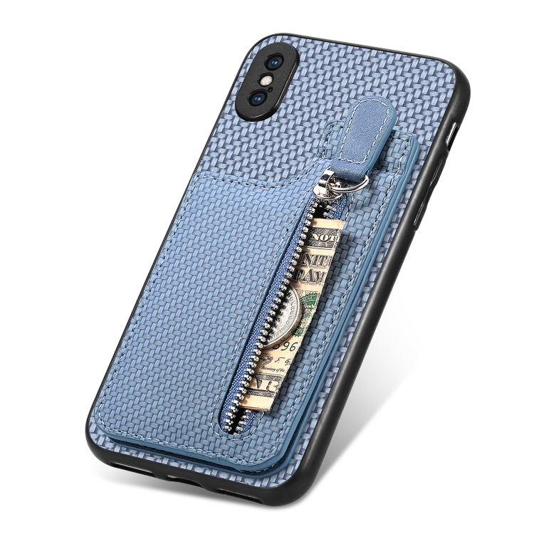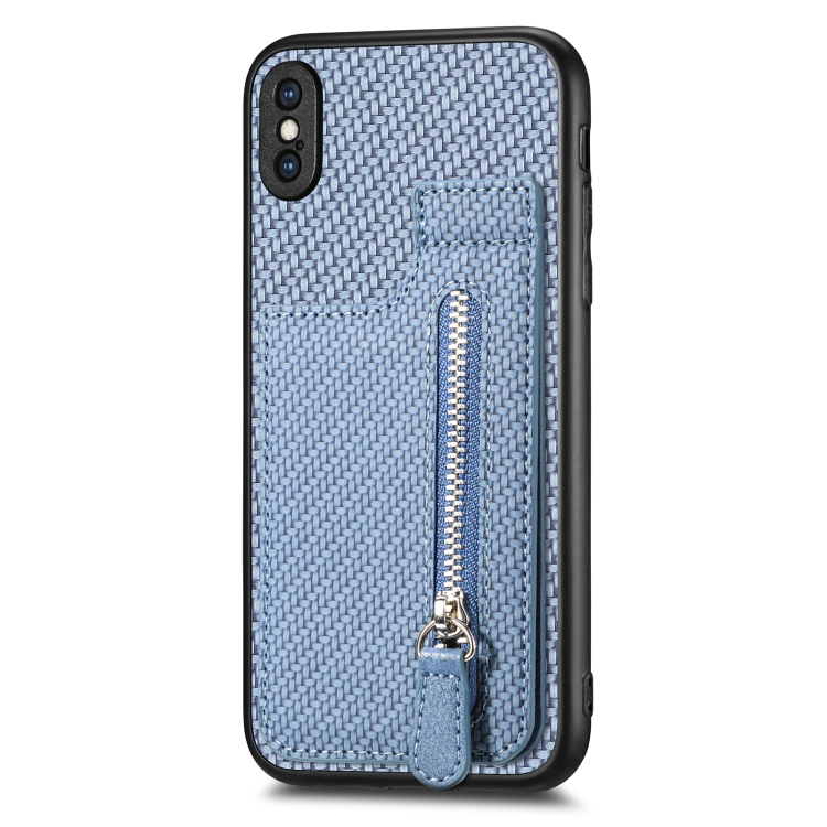 Funda de Teléfono iPhone Xs Max con Cremallera Vertical Fibra de Carbono (Azul)