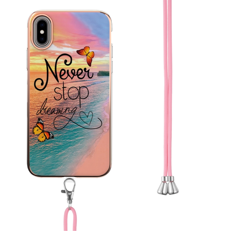 Estuche TPU para iPhone Xs Max Galvanoplastia Patrón Imd a Prueba de Golpes con Cordón (Dream Chasing Butterfly)
