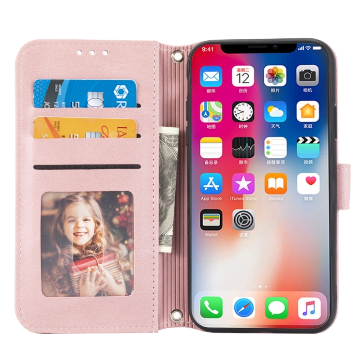 Estuche de Cuero Pu + TPU para iPhone Xs Max con Hebilla Magnética, Soporte, Ranura para Tarjeta y Billetera (Rosa)