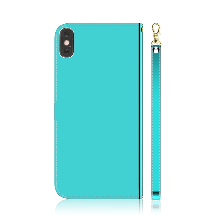 Estuche de Cuero para iPhone Xs Max con Superficie de Espejo Imitada, Tapa Horizontal, Soporte, Ranuras para Tarjetas y Billetera (Verde Menta)