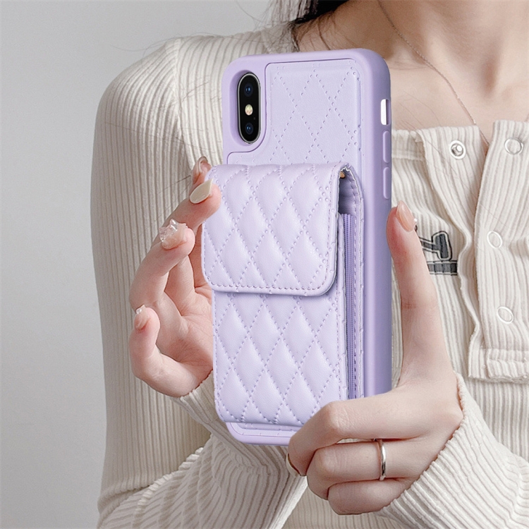 Funda para iPhone Xs Max Wallet Vertical Rhombic Cuero (Púrpura)