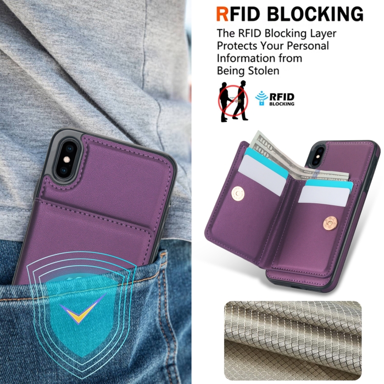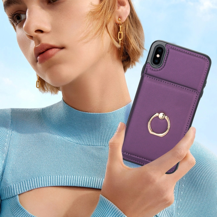 Estuche para Teléfono iPhone Xs / X con Soporte para Anillo y Tarjeta Antirrobo Rfid (Púrpura Oscuro)