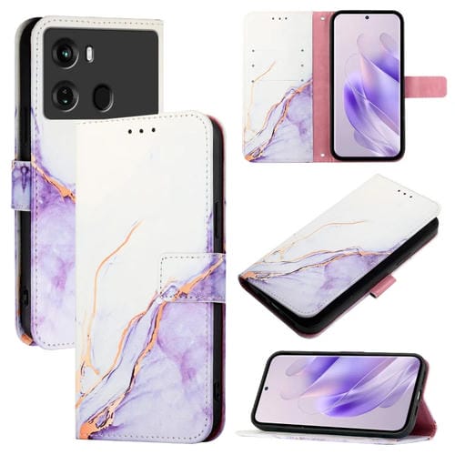 Funda para Itel P40 Pt003 de Cuero con Tapa y Patrón de Mármol (Blanco y Morado)