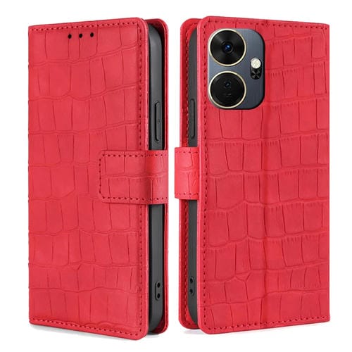 Funda de Cuero Skin Feel Crocodile con Cierre Magnético para Itel P55 + 4G (Rojo)