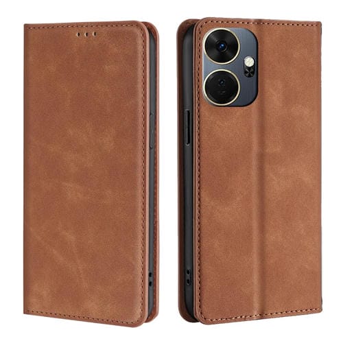 Funda de Cuero Magnética para Itel P55 + 4G Skin Feel (Marrón Claro)