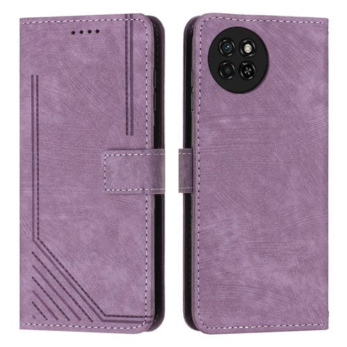 Funda de Cuero para Itel S23 Skin Feel con Patrón de Rayas y Cordón (Púrpura)