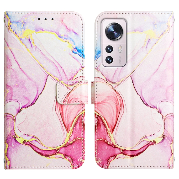 Para la caja del teléfono de cuero Flip de patrón de mármol Xiaomi 12 lite (oro rosa LS005)