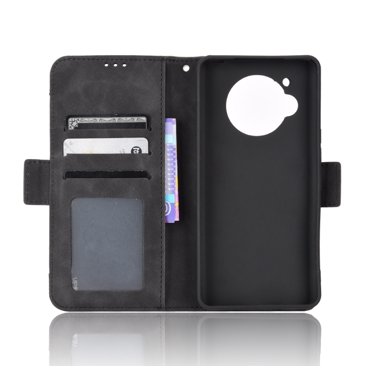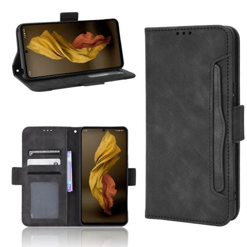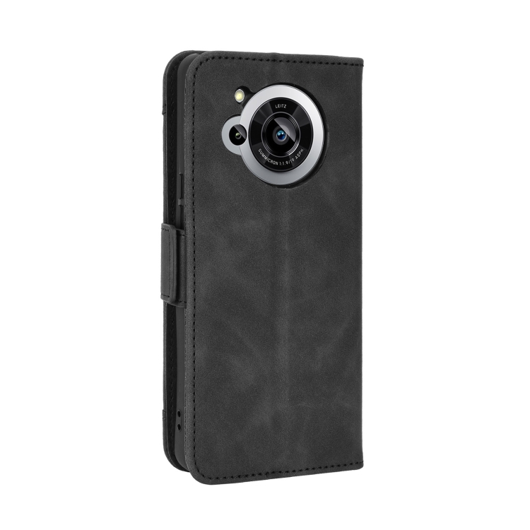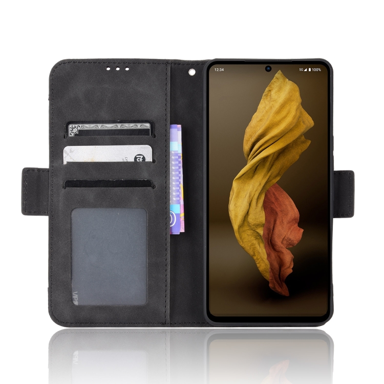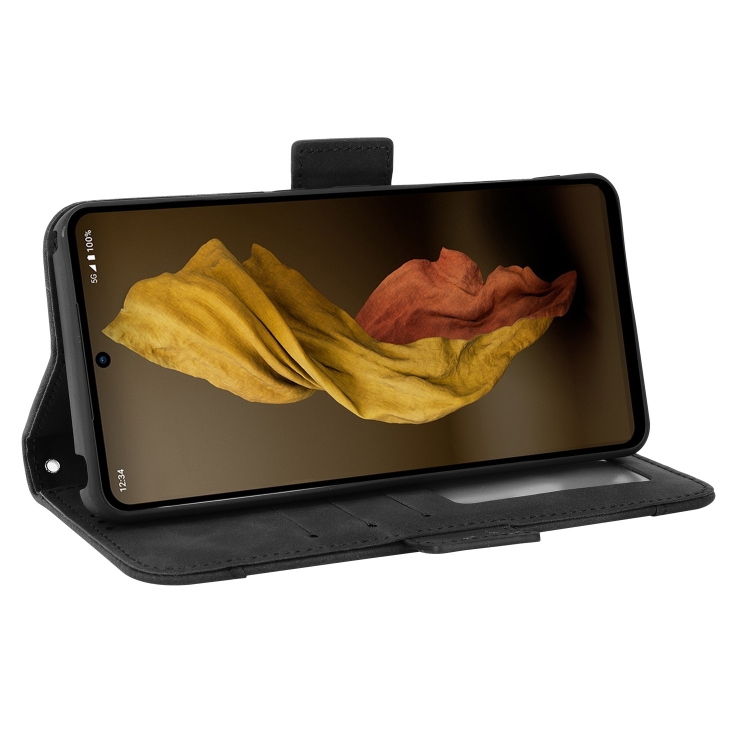 Funda de Cuero para Teléfono R7 con Ranuras de Tarjeta y Textura de Ternero (Negro)