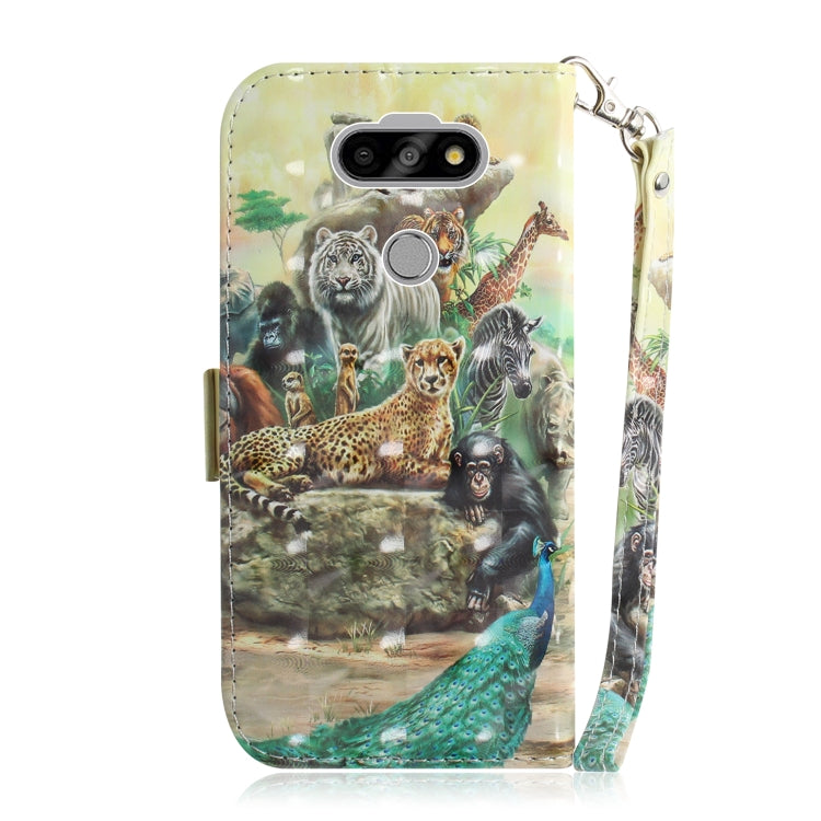 Funda de Cuero Abatible Horizontal para LG Aristo 5 con Dibujo 3D, Soporte, Ranuras y Cordón (Zoo)