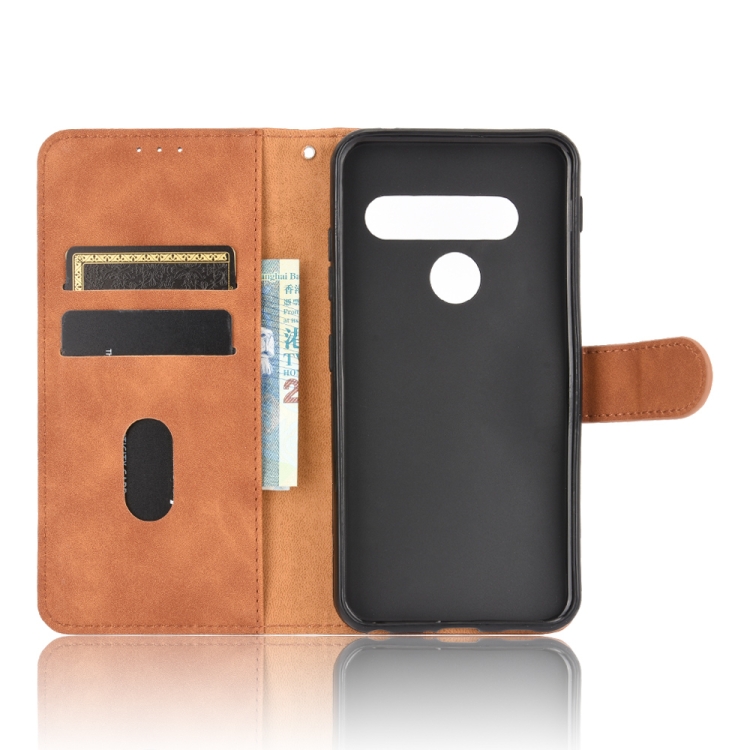 Funda Cuero Pu para LG G8S Thinq con Soporte, Hebilla Magnética, Ranuras para Tarjetas y Billetera (Marrón)