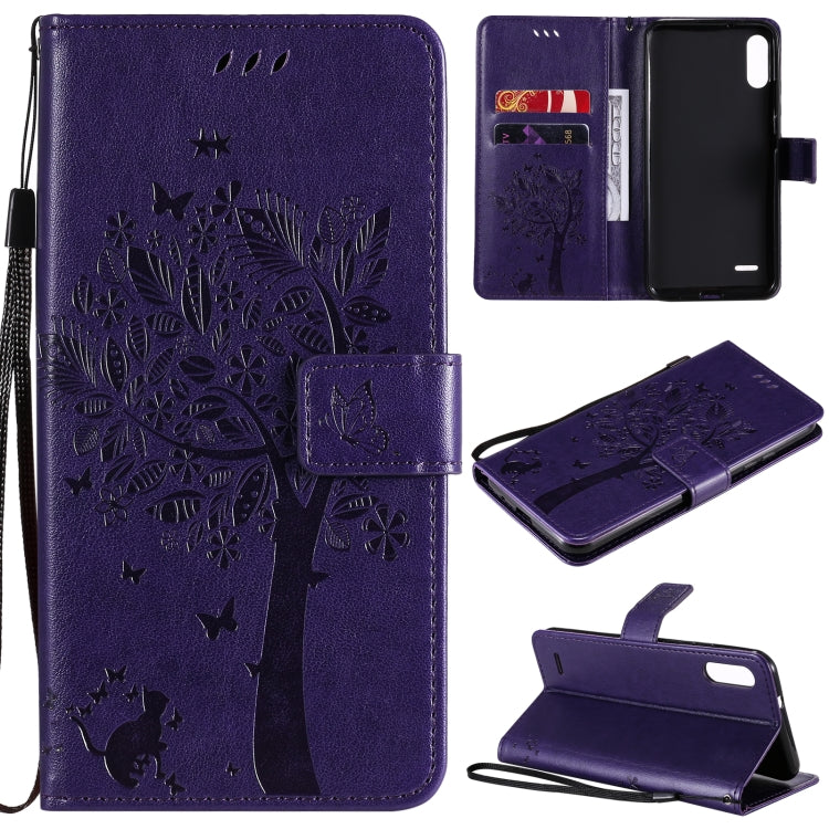 Funda Cuero PU para LG K22 y K22 Plus con Soporte, Ranuras y Cordón (Púrpura)