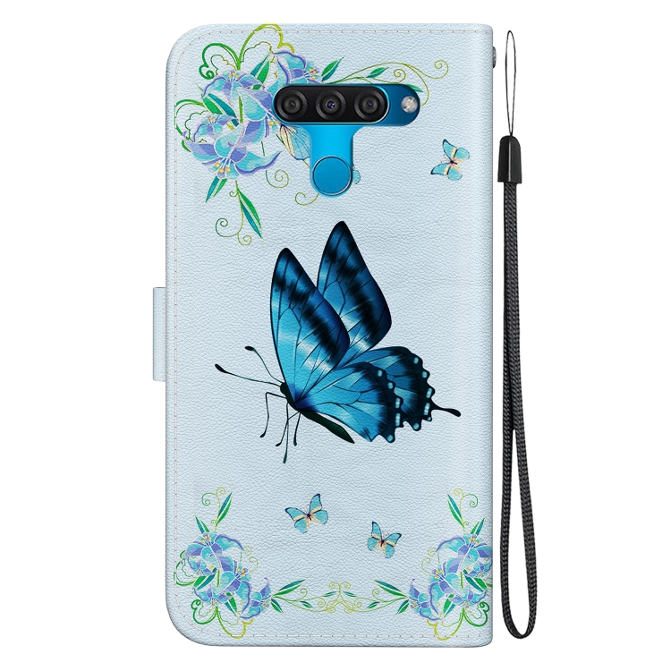 Funda para Teléfono LG K50 Q60 de Cuero con Dibujo Coloreado y Textura de Cristal (Pensamientos Azules)