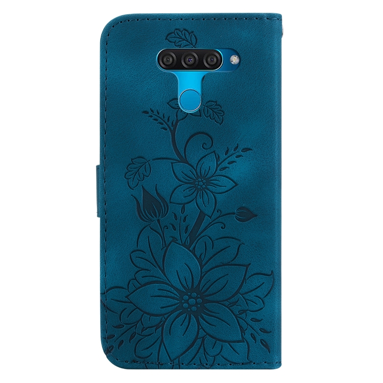 Funda para Teléfono LG K50 Q60 de Cuero con Relieve Lily (Azul Oscuro)