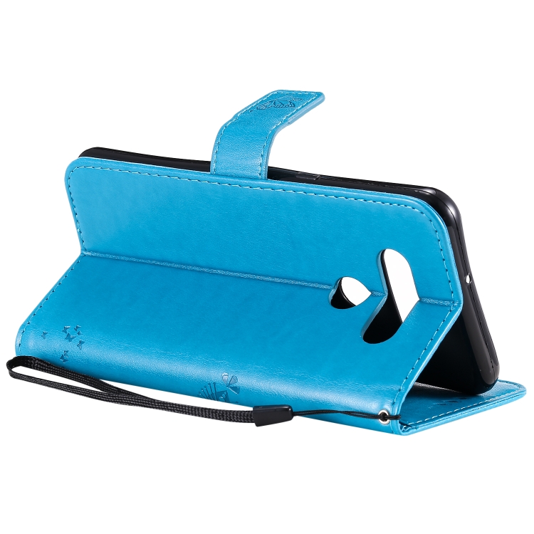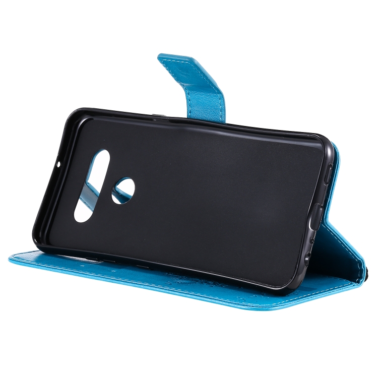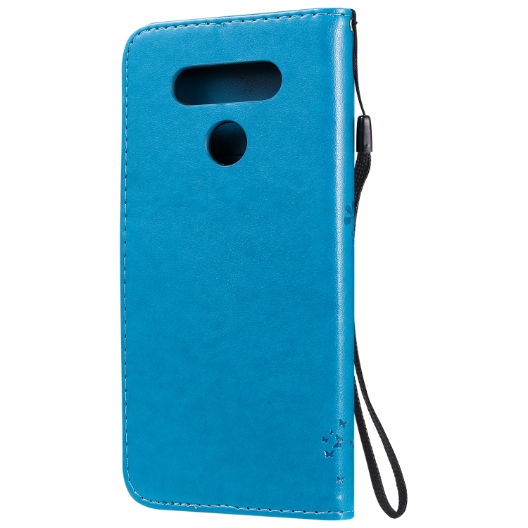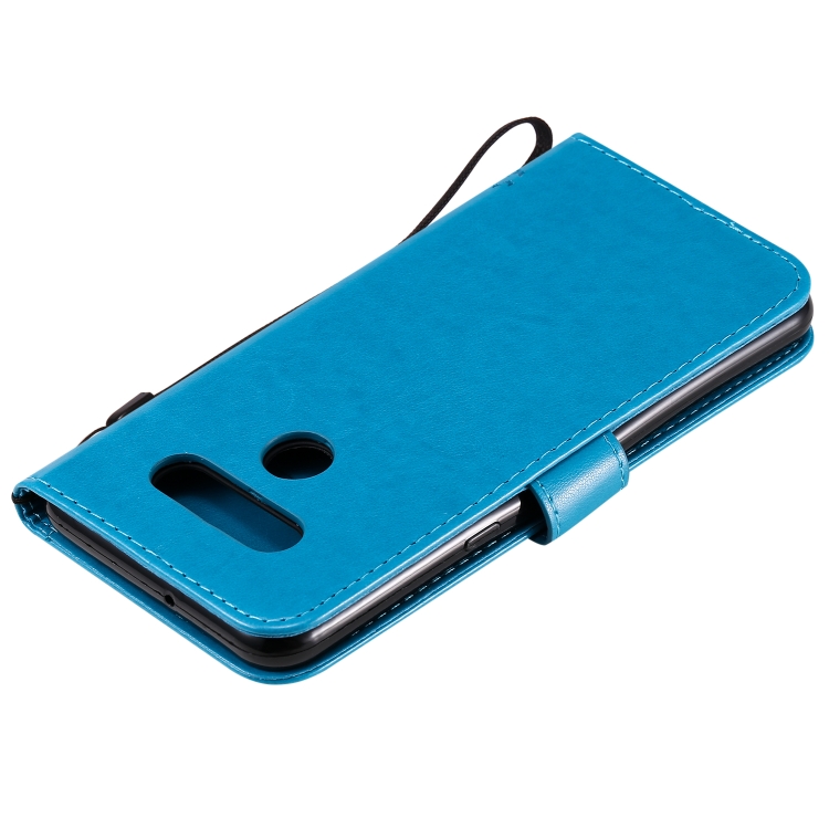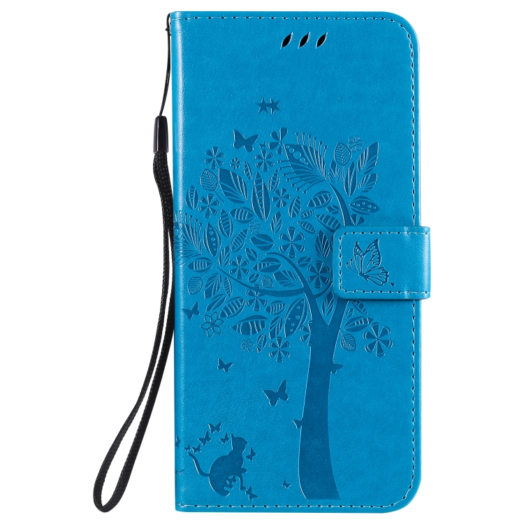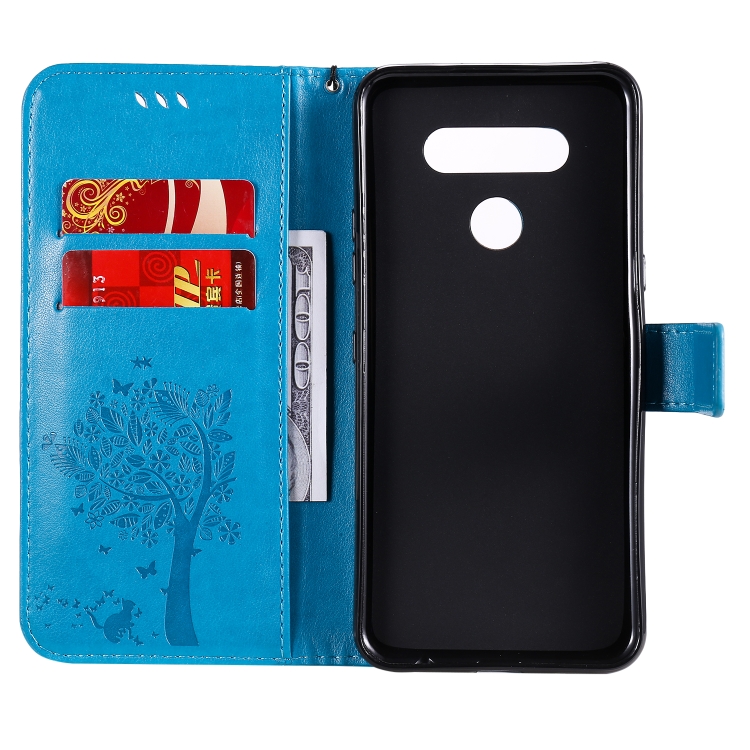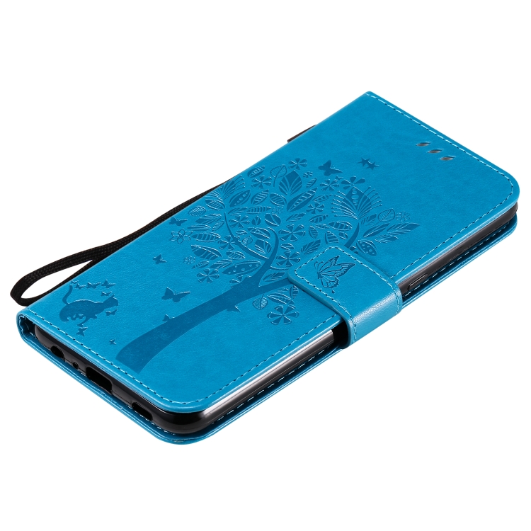 Funda de Cuero para LG K51 Tree & CAT con Tapa Horizontal, Soporte, Ranuras para Tarjetas, Billetera y Cordón (Azul)
