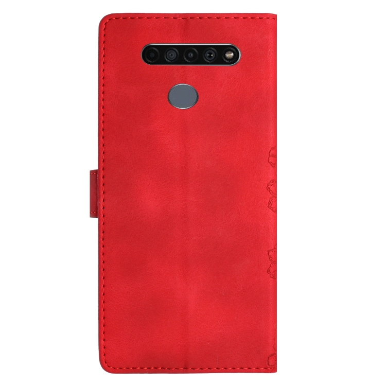Funda para Teléfono LG K51S Cherry Blossom Butterfly Skin Feel de PU en Relieve (Rojo)