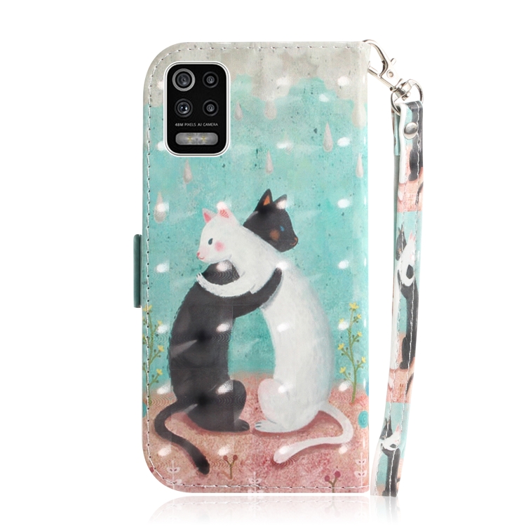 Funda de Cuero para LG K52 con Tapa Horizontal, Dibujo 3D, Soporte, Ranuras y Cordón (Gato Blanco y Negro)