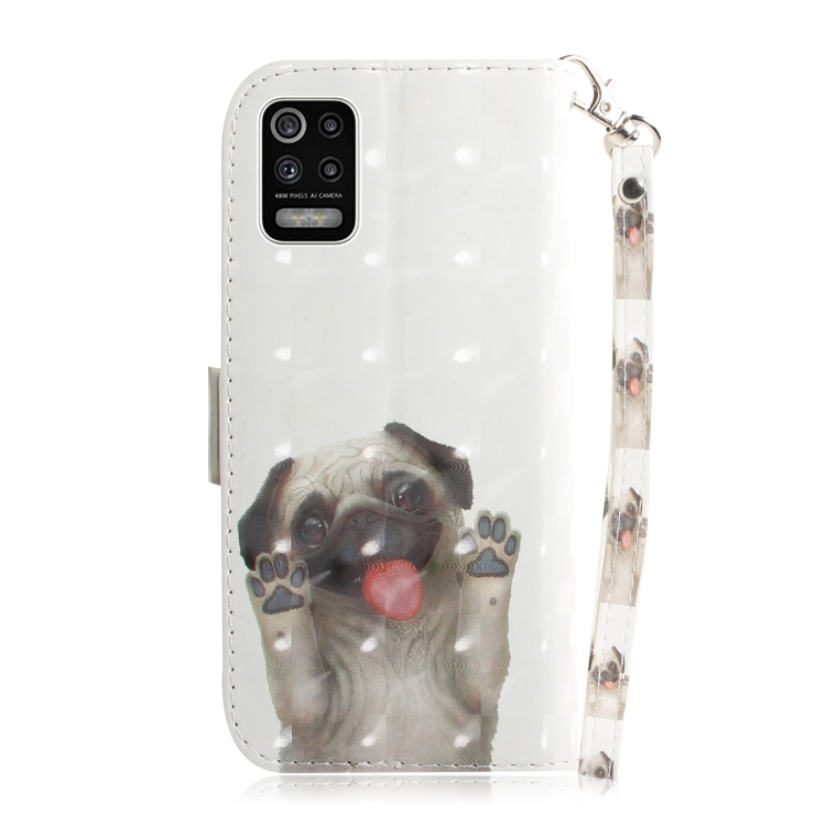 Funda de Cuero para LG K52 con Tapa Horizontal, Dibujo 3D, Soporte, Ranuras y Cordón (Pug)